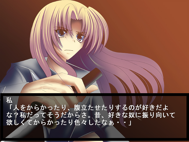 "You enjoy making fun of others, don't you? Don't you like getting others angry from it? I am the same way after all. Long time ago, I would do plenty to get the person I like to look at my direction."